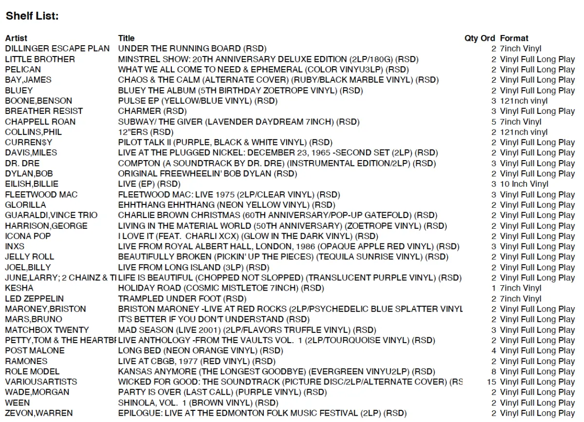 Thank you for submitting your wishlists for RSD Black Friday! Your participation is crucial to the success of the event, as it helps us ensure that we cater to your interests and provide an incredible experience for everyone.